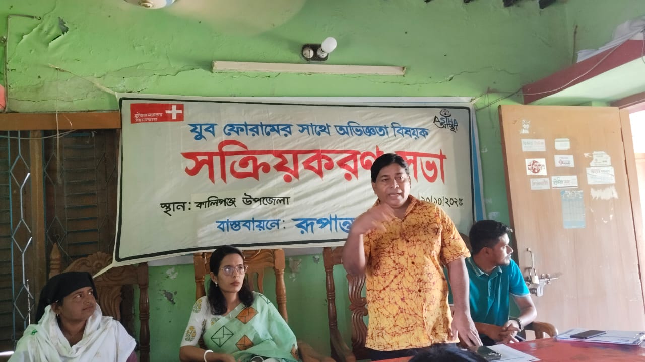 সোমবার (২০ অক্টোবর) বেসরকারি উন্নয়ন সংস্থা রুপান্তরের আয়োজনে আস্থা প্রকল্পের আওতায় উপজেলা প্রেসক্লাবের কনফারেন্স রুমে এ সক্রিয়করণ সভা অনুষ্ঠিত হয়। অনুষ্ঠানে সভায় সভাপতিত্ব করেন কালিগঞ্জ উপজেলা যুব ফোরামের যুগ্ম আহ্বায়ক মজিনা বেগম। অনুষ্ঠানে প্রধান অতিথি হিসেবে আলোচনা করেন কালিগঞ্জ উপজেলা ইউএনও অনুজা মণ্ডল। বিশেষ অতিথি হিসেবে আলোচনা করেন জেলা নাগরিক প্লাটফর্মের সদস্য ও কালিগঞ্জ উপজেলা প্রেসক্লাবের সাধারণ সম্পাদক সুকুমার দাশ বাচ্চু। প্রকল্পের ফিল্ড অফিসার বিপুল রায় এর সঞ্চালনায় সভায় মূল বিষয়বস্তু উপস্থাপন করেন প্রকল্পের জেলা সমন্বয়কারী মাসুদ রানা। সভায় মাঠ পর্যায়ের কার্যক্রম বিষয়ে বিস্তারিত আলোচনা ও অগ্রীম পরিকল্পনা গ্রহণ করা হয়। অংশগ্রহনকারী হিসেবে উপজেলার ১২টি ইউনিয়নের যুব সদস্যরা উপস্থিত ছিলেন।